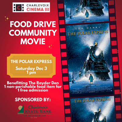 Start your day with a family-friendly holiday movie at Charlevoix Cinema III—free for everyone! Bring a canned good or an unwrapped toy for admission!
